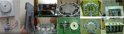 Тоді виникла ідея створити універсальний ротатор для обертання як генераторів, так і двигунів (особливо асинхронних, які легко перетворити на генератор) за тим самим принципом. Ми зібрали інсталяцію, яку ви бачили на фото та відео. Ми встановили 240 котушок: 120 внутрішніх, 120 зовнішніх, 30 магнітів на п'ять дисків. Схема керування котушкою така ж, як у генератора Odessa.