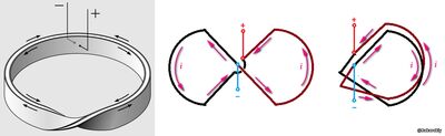 Я сталкивался с технологией когда данный вензель наматывался в виде емкости и замкнутого контура, для защитного амулета где 1 провод был замкнут а з шести по три формировалась симметричная емкость. Изготовление требует сноровки и специального оборудования для этой цели. Лично мое мнение что автор попал именно в версию сложенного вензеля Мировинга больше чем в ленту Мёбиуса. Если Мебиус может как навредить так и исцелить то петли вензеля Мировинга есть средство исцеления.